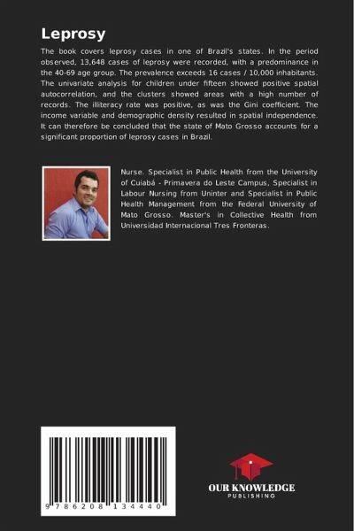 The book covers leprosy cases in one of Brazil's states. In the period observed, 13,648 cases of leprosy were recorded, with a predominance in the 40-69 age group. The prevalence exceeds 16 cases / 10,000 inhabitants. The univariate analysis for children under fifteen showed positive spatial autocorrelation, and the clusters showed areas with a high number of records. The illiteracy rate was positive, as was the Gini coefficient. The income variable and demographic density resulted in spatial independence. It can therefore be concluded that the state of Mato Grosso accounts for a significant proportion of leprosy cases in Brazil.
