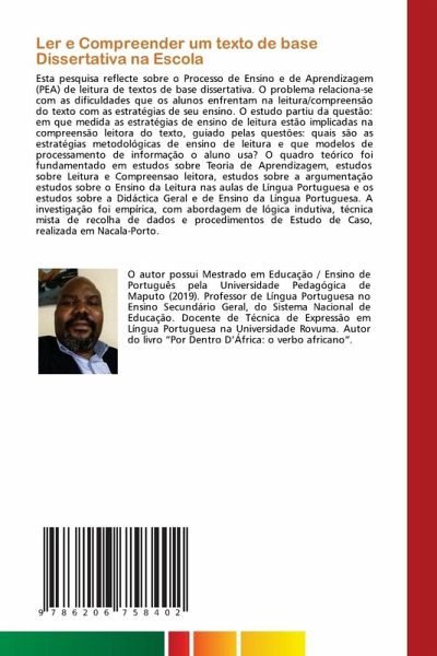 Esta pesquisa reflecte sobre o Processo de Ensino e de Aprendizagem (PEA) de leitura de textos de base dissertativa. O problema relaciona-se com as dificuldades que os alunos enfrentam na leitura/compreensão do texto com as estratégias de seu ensino. O estudo partiu da questão: em que medida as estratégias de ensino de leitura estão implicadas na compreensão leitora do texto, guiado pelas questões: quais são as estratégias metodológicas de ensino de leitura e que modelos de processamento de informação o aluno usa? O quadro teórico foi fundamentado em estudos sobre Teoria de Aprendizagem, estudos sobre Leitura e Compreensao leitora, estudos sobre a argumentação estudos sobre o Ensino da Leitura nas aulas de Língua Portuguesa e os estudos sobre a Didáctica Geral e de Ensino da Língua Portuguesa. A investigação foi empírica, com abordagem de lógica indutiva, técnica mista de recolha de dados e procedimentos de Estudo de Caso, realizada em Nacala-Porto.
