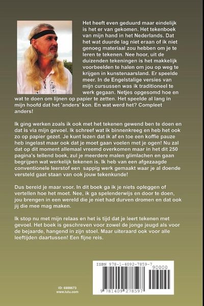 Het heeft even geduurd maar eindelijk is het er van gekomen. Het tekenboek van mijn hand in het Nederlands. Het speelde al lang in mijn hoofd dat het lesgeven in tekenen 'anders' kon. En wat werd het? Compleet anders! Ik ging werken zoals ik ook met het tekenen gewend ben te doen en dat is via mijn gevoel. Ik schreef wat ik binnen kreeg en heb het ook zo op papier gezet. Je kunt lezen dat ik af en toe een koffie pauze heb ingelast voor me zelf maar ook dat je moet gaan voelen met je ogen! Nu zal dat op dit moment het allemaal vreemd overkomen maar in het dit 250 pagina's tellend boek zul je meerdere malen in de lach schieten en gaan begrijpen wat werkelijk tekenen is. Ik heb van afgezaagde conventionele leerstof een lekker sappig werk gemaakt waar je al doende versteld gaat staan van ook jouw tekenkunde!