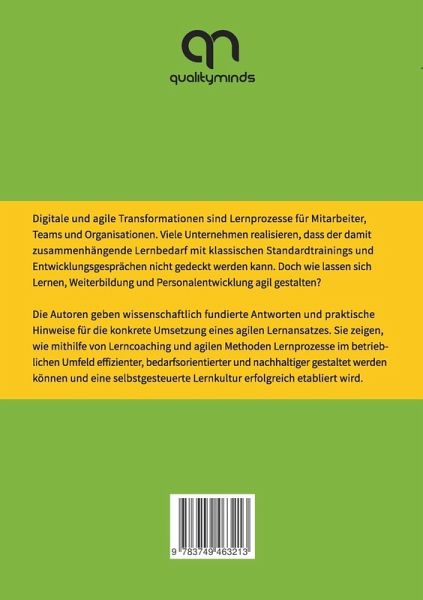 Digitale und agile Transformationen sind Lernprozesse für Mitarbeiter, Teams und Organisationen. Viele Unternehmen realisieren, dass der damit zusammenhängende Lernbedarf mit klassischen Standardtrainings und Entwicklungsgesprächen nicht gedeckt werden kann. Doch wie lassen sich Lernen, Weiterbildung und Personalentwicklung agil gestalten?Die Autoren geben wissenschaftlich fundierte Antworten und praktische Hinweise für die konkrete Umsetzung eines agilen Lernansatzes. Sie zeigen, wie mithilfe von Lerncoaching und agilen Methoden Lernprozesse im betrieblichen Umfeld effizienter, bedarfsorientierter und nachhaltiger gestaltet werden können und eine selbstgesteuerte Lernkultur erfolgreich etabliert wird.