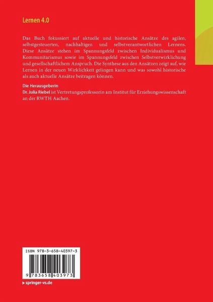 Das Buch fokussiert auf aktuelle und historische Ansätze des agilen, selbstgesteuerten, nachhaltigen und selbstverantwortlichen Lernens. Diese Ansätze stehen im Spannungsfeld zwischen Individualismus und Kommunitarismus sowie im Spannungsfeld zwischen Selbstverwirklichung und gesellschaftlichem Anspruch. Die Synthese aus den Ansätzen zeigt auf, wie Lernen in der neuen Wirklichkeit gelingen kann und was sowohl historische als auch aktuelle Ansätze beitragen können.
