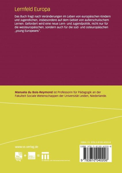Eine Einführung.- Ein bisschen deutsch - ein bisschen holländisch. Deutsch-deutsche Kindheit und Jugend aus verschiedenen Blickwinkeln betrachtet.- Einleitung: Über Perspektiven gesprochen.- Eine ostdeutsche Familie in den Niederlanden.- Deutsch-deutsche Kindheit und Jugend aus westdeutscher Forschersicht.- Neue und alte Themen - vergleichende Überlegungen.- Schulkritische Überlegungen im europäischen Kontext.- Kindheit und Jugend in Europa in kulturvergleichender Perspektive.- Einstimmung auf ein grenzenloses Thema.- Probleme kulturvergleichender Forschung.- Jugend.- Kindheit.- Abschließende - nicht abgeschlossene - Überlegungen zu einer vergleichenden europäischen Kindheits- und Jugendforschung.- Kinder und Kindheiten in europäischen Gegenwartsgesellschaften.- Wandlungen in Kindheitskonzepten.- Kinder und Familie.- Kinderrechte und Kinderpolitik.- Forschunglücken.- Europäische Jugend- und Bildungspolitik.- Stationen einer europäischen Jugend- und Bildungspolitik.- Lissabon-Gipfel 2000.- Das Verhältnis zwischen formal education und non-formal education/learning.- Europäisches Bewusstsein der Lern- und Bildungskrise.- Lernfeld Europa - Chancen für Schüler und Lehrer im 21. Jahrhundert.- Lebenslanges Lernen und informelles Lernen in modernen Wissensgesellschaften.- Partizipation und Lernchancen.- Europäische Austauschprogramme und die Haltung der Jugend zu Europa.- Chancen und Risiken von Lernern in europäischen Wissensgesellschaften.- Schule - eine wissenschaftliche Polemik.- Die Schule befindet sich in einer tiefen Krise.- Der 'Erlebnisgesellschaft' ist die pädagogische Krise ziemlich egal.- Der pädagogische Bezug ist zerbrochen.- Die Schule rezipiert den Modernisierungsdiskurs nicht.- Der soziologische Modernisierungsdiskurs isttransnational, der pädagogische und bildungspolitische Diskurs (immer noch) national.- Jugendkulturelles Kapital in Wissensgesellschaften.- Der Stellenwert von Lernen im menschlichen Lebenslauf.- Die zunehmende Bedeutung von informellem Lernen.- Verschiedene Kapitalsorten.- Jugendkulturelle Trendsetter Lerner.- Sind Trendsetter Lerner eine Elitefraktion?.- Gesellschaftliche Einbettungen.- 'Ich will noch soviel erleben, ich will mich noch nicht festlegen'. Die Offenheit männlicher und weiblicher Lebensentwürfe junger Erwachsener.- Der menschliche Lebenslauf in der Moderne.- Normal- und wahlbiographische Lebensentwürfe.- Vermischungen von normal- und wahlbiographischen Lebensentwürfen.- Vermischungen von Lebensbereichen.- Teilprojekte in jugendlichen Biographien.- Offene Lebensentwürfe und lebenslanges Lernen.- Jugend - Lernen - Europa: Ménage à trois?.- Altes und neues Lernen.- Ausweitung des Lernbegriffs.- Trendsetter Lerner.- Eine europäische Agenda für Jugendforscher.- Kritik an der kompensatorischen Erziehung - Ein Blick zurück.- Literturverzeichnis.