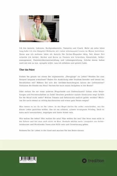 Stehen Sie gerade vor einem der sogenannten "Übergänge" im Leben? Werden Sie zum Beispiel langsam erwachsen? Haben Sie Ausbildung oder Studium beendet und treten ins Berufsleben ein? Nähern Sie sich den berühmt-berüchtigten Jahren der Lebensmitte? Verlassen die Kinder das Nest? Suchen Sie nach neuen Aufgaben in der Rente?Oder stehen Sie vor einer anderen Wegscheide und Umbruchszeit? Gehen etwa Beziehungen und Partnerschaften zu Ende? Brechen gewohnte soziale Strukturen weg? Erfüllt Sie Ihr Beruf nicht mehr? Wollen Träume und Sehnsüchte endlich gelebt werden? Möchten Sie noch einmal so richtig durchstarten und etwas ganz Neues wagen?Was immer es ist: Es ist Ihr Leben. In der Regel dürfen Sie selbst entscheiden, wie Sie dieses Leben gestalten wollen. Das ist ein schönes, schwer errungenes Privileg. Doch es kann auch verunsichern, ängstigen und harte Arbeit sein.Wie wollen Sie leben? Wer wollen Sie sein? Was wollen Sie tun? Das lernt man nicht in der Schule und hat man auch nicht imBlut. Deshalb möchte mein Lernpaket aus Selbstlernkursen und Workbooks Ihnen eine Hilfe sein und Orientierung geben.Nehmen Sie Ihr Leben in die Hand und machen Sie das Beste daraus.Ich wünsche Ihnen dafür alles Gute.