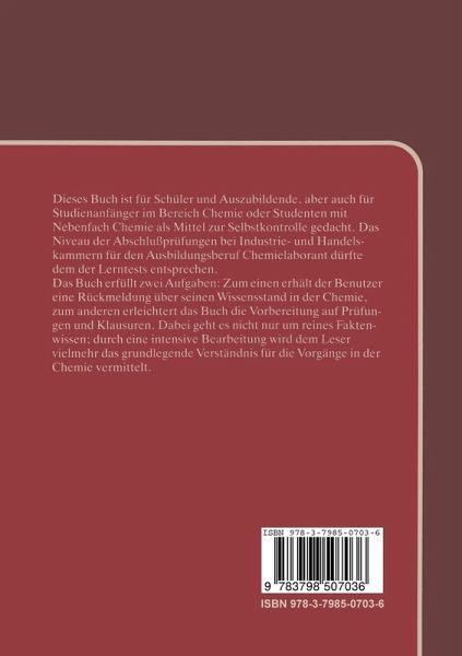 Der Begriff "Lerntest" ist scheinbar widerspruchlich, denn Lernen ist gemeinhin vom Testen des Lernzuwachses zeitlich getrennt. Beim Durcharbeiten der vorliegenden Lerntests wird beides erreicht: Lernen durch erIauternde Zwischentexte und Wiederholungen; Testen durch Vergleich mit den L6sungen. Bei erfolgreicher Bearbeitung der Lern tests wird nicht nur Faktenwissen vermittelt, sondern es werden vor al lem auch Lernziele auf der Stufe des Verstehens und der Anwendung erreicht. Dieses Buch ist fUr SchUler und Auszubildende, aber auch fUr Stu dienanfanger im Bereich Chemie oder Studenten mit Nebenfach Che mie als Mittel zur Selbstkontrolle gedacht. Das Niveau der AbschluB prUfungen bei Industrie- und Handelskammern fUr den Ausbildungs beruf Chemielaborant durfte dem der Lerntests entsprechen. Der erste Teil enthalt die Kontrollfragen, die sich in 33 Lerntests glie dern, im zweiten Teil finden Sie die L6sungen. Aile notwendigen Zah lenwerte k6nnen Sie dem Anhang entnehmen. Die Arbeit mit diesem Buch umfaBt das AusfUllen von Luckentexten mit Schusselbegriffen,das Vervollstandigen von Tabellen, das L6sen von st6chiometrischen Aufgaben, das Finden von Synthesen und ande res mehr. ZweckmaBigerweise arbeitet man einen Lerntest in einem Zuge durch und vergleicht danach die L6sungen. Dabei ist zu beach ten, daB einige Male auch andere als die angegebenen L6sungen rich tig sein k6nnen. Die ungefahre Zeitspanne fUr die Bearbeitung der Lerntests liegt jeweils zwischen 30 und 120 Minuten. Der Schwierig keitsgrad der Fragen innerhalb eines Lerntests ist ansteigend. Eine be stimmte Reihenfolge beim Bearbeiten der Lerntests braucht nicht ein gehalten zu werden.