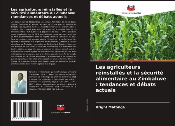 Les discours sur les déséquilibres économiques font l'objet de débats depuis plusieurs décennies en Afrique. Au coeur de la lutte pour la libération du Zimbabwe se trouvait le désir de la majorité noire d'accéder à la terre et de la posséder, alors qu'elle était entre les mains de la minorité blanche qui constituait moins d'un quart de la population du pays. 4 000 agriculteurs blancs possédaient plus de 75 % des meilleures terres agricoles, tandis que les Noirs étaient concentrés dans les régions sèches et semi-arides du pays. Dans ce contexte, cet ouvrage explore l'impact de la performance des agriculteurs réinstallés dans la province du Mashonaland Ouest sur la sécurité alimentaire au Zimbabwe. La province du Mashonaland Ouest est dotée des sols alluviaux les plus riches et reçoit des précipitations plus importantes que d'autres régions du pays. Cet ouvrage examine les raisons qui ont motivé le programme de réforme agraire, les motivations des personnes qui l'ont mené et l'impact de ce programme sur la production agricole et, en fin de compte, son incidence sur la sécurité alimentaire. L'argument central de l'ouvrage est que les agriculteurs réinstallés ont surpassé les anciens fermiers blancs en matière de production agricole, bien qu'avec moins de ressources, justifiant ainsi la nécessité d'une réforme agraire dans le pays.