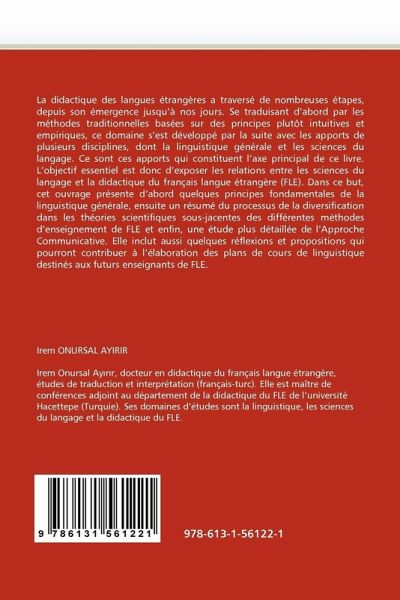 La didactique des langues étrangères a traversé de nombreuses étapes, depuis son émergence jusqu'à nos jours. Se traduisant d'abord par les méthodes traditionnelles basées sur des principes plutôt intuitives et empiriques, ce domaine s'est développé par la suite avec les apports de plusieurs disciplines, dont la linguistique générale et les sciences du langage. Ce sont ces apports qui constituent l'axe principal de ce livre. L'objectif essentiel est donc d'exposer les relations entre les sciences du langage et la didactique du français langue étrangère (FLE). Dans ce but, cet ouvrage présente d'abord quelques principes fondamentales de la linguistique générale, ensuite un résumé du processus de la diversification dans les théories scientifiques sous-jacentes des différentes méthodes d'enseignement de FLE et enfin, une étude plus détaillée de l'Approche Communicative. Elle inclut aussi quelques réflexions et propositions qui pourront contribuer à l'élaboration des plans de cours de linguistique destinés aux futurs enseignants de FLE.