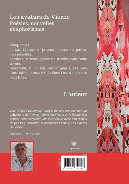 Jean-Claude Lemonnier, auteur de cinq romans dont Le Labyrinthe de Fowley, Monsieur Roses et À l¿instar des étoiles, nous surprend une fois encore avec son recueil de poésies, nouvelles et aphorismes intitulé Les avatars De Viorne.