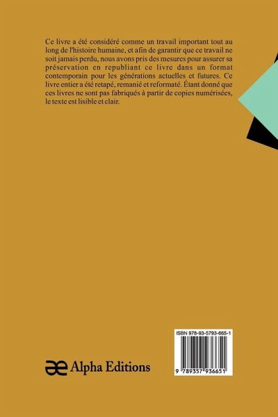 Les aventures de M. Colin-Tampon, est un livre classique et rare, qui a été considéré comme important tout au long de l'histoire de l'humanité, et pour que cet ouvrage ne soit jamais oublié, chez Alpha Editions, nous avons fait des efforts pour sa préservation en rééditant ce livre dans un format moderne pour les générations présentes et futures. . Tout ce livre a été reformaté, retapé et repensé. Ces livres ne sont pas constitués de copies numérisées de leur ¿uvre originale et leur texte est donc clair et lisible. Ce volume remarquable s'inscrit dans les genres de Language and Literatures Juvenile belles lettres