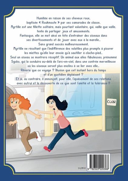 Myrtille a une tare : elle est rousse. C'est tout du moins ce qui se ressent à l'école, où, jugée par ses camarades de classe, elle se retrouve seule avec sa différence, qui l'empêche de vivre avec les autres enfants. Rejetée, humiliée et rabaissée en permanence, elle décidera tout de même de ne pas s'arrêter là. C'est alors auprès des oiseaux qu''elle se réfugiera pour retrouver la joie des jeux. Bien décidée à leur apprendre un tas d'activités, elle réalisera pourtant très vite que le règne animal n'est pas plus facile et qu'elle n'y est pas à sa place non plus. Mais sa rencontre inattendue, voire inespérée avec SGOBO, l'oiseau magique, va complètement changer sa vie. D'abord un voyage au pays merveilleux, puis une rencontre hasardeuse avec Marie, bref, une série d'évènements qui permettront à Roukmoute de réaliser son voeu le plus cher : se former un cercle d'amis humains.