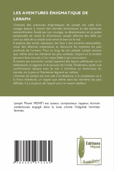 L'histoire des aventures énigmatiques de Leraph est celle d'un voyage épique à travers des mondes fantastiques et des épreuves extraordinaires. Guidé par son courage, sa détermination et sa quête perpétuelle de vérité et d'harmonie, Leraph affronte des défis qui vont au-delà de la simple lutte entre le bien et le mal.Il explore des terres mystiques, fait face à des ennemis redoutables, noue des alliances inattendues et découvre les mystères les plus profonds de l'univers. Tout au long de son périple, Leraph montre que même dans les moments les plus sombres, l'espoir et la lumière peuvent être trouvés si l'on reste fidèle à ses convictions.À travers ses aventures, Leraph apprend des leçons précieuses sur la rédemption, la sagesse et le pouvoir de l'unité. Finalement, après une confrontation épique avec le mal, il contribue au renouveau du monde, où la paix et l'harmonie règnent en maîtres.L'histoire de Leraph est une ode à la résilience, à la compassion et à la force intérieure, un rappel que même dans les moments les plus difficiles, il y a toujours de l'espoir pour un avenir meilleur.