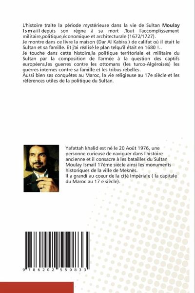 L'histoire traite la période mystérieuse dans la vie de Sultan Moulay Ismail depuis son règne à sa mort .Tout l'accomplissement militaire,politique,économique et architecturale (1672/1727).Je montre dans ce livre la maison (Dar Al Kabira ) de califat où il était le Sultan et sa famille. Et j'ai réalisé le plan telqu'il était en 1680 !..Je touche dans cette histoire,la politique territoriale et militaire du Sultan par la composition de l'armée à la question des captifs européens,les guerres contre les ottomans (les turco-Algéroises) les guerres internes contre sa famille et les tribus rebelles.Aussi bien ses conquêtes au Maroc, la vie religieuse au 17e siècle et les références utiles de la politique du Sultan.