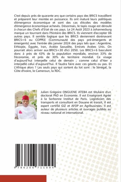 C'est depuis près de quarante ans que certains pays des BRICS travaillent et préparent leur montée en puissance. Ils ont maturé leurs politiques d'émergence économique et sont des cas d'écoles des modèles d'émergence économique achevés. Désormais, le tapis rouge est déroulé à chacun des Chefs d'Etat de ces pays. Le 24 Août 2023 à Johannesburg marque un tournant dans l'histoire des BRICS. Ils viennent d'accepter 06 autres pays. Il semble logique que les BRICS deviennent dorénavant BRICS+6 ou COPPEE (Communauté des pays pré-émergents et émergents) avec l'entrée dès janvier 2024 des pays tels que : Argentine, Ethiopie, Égypte, Iran, Arabie Saoudite, Emirats Arabes Unis. On pourrait alors arriver aux BRICS+30 d'ici 2050. Les BRICS+6 basculent donc à près de 43% de la population mondiale, environ 33% de l'économie, et près de 30% du territoire mondial. Ce visage d'aujourd'hui interpelle celui de demain ; comme celui d'hier a interpellé celui d'aujourd'hui. Il faudra faire avec ces géants ou pas. Et L'Afrique alors ? Les seuls pays qui sortent du lot sont : le Sénégal, la Côte d'Ivoire, le Cameroun, la RDC.