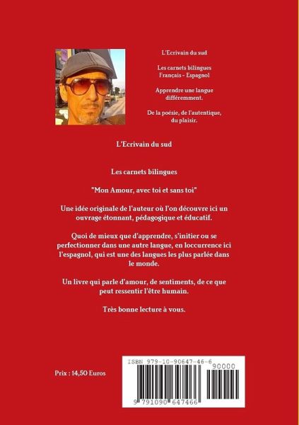 Les carnets bilingues ""Mon Amour, avec toi et sans toi"" est un ouvrage unique écrit en français et en espagnol par l'auteur. Une approche nouvelle d'apprentissage de la langue espagnole, puisque c'est avec un subtil mélange de sincérité, de poésie et d'amour que l'auteur nous livre ici. un très bel ouvrage. Bonne lecture à vous.