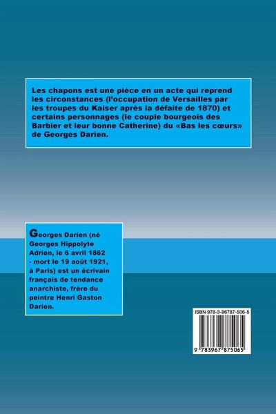 Les chapons est une pièce en un acte qui reprend les circonstances (l'occupation de Versailles par les troupes du Kaiser après la défaite de 1870) et certains personnages (le couple bourgeois des Barbier et leur bonne Catherine) du Bas les c¿urs de Georges Darien.
