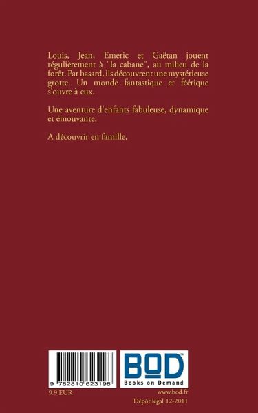 Louis, Jean, Emeric et Gaëtan jouent régulièrement à "la cabane" au milieu de la forêt. Par hasard, ils découvrent une grotte. Un monde fantastique et féérique s'ouvre à eux.Une aventure d'enfants fabuleuse, dynamique et émouvante.A découvrir en famille.