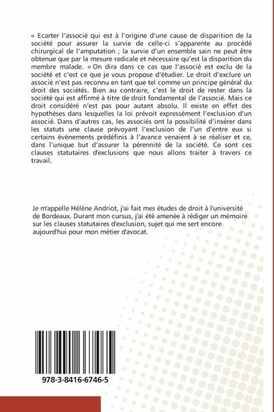 " Ecarter l'associé qui est à l'origine d'une cause de disparition de la société pour assurer la survie de celle-ci s'apparente au procédé chirurgical de l'amputation ; la survie d'un ensemble sain ne peut être obtenue que par la mesure radicale et nécessaire qu'est la disparition du membre malade. " On dira dans ce cas que l'associé est exclu de la société et c'est ce que je vous propose d'étudier. Le droit d'exclure un associé n'est pas reconnu en tant que tel comme un principe général du droit des sociétés. Bien au contraire, c'est le droit de rester dans la société qui est affirmé à titre de droit fondamental de l'associé. Mais ce droit considéré n'est pas pour autant absolu. Il existe en effet des hypothèses dans lesquelles la loi prévoit expressément l'exclusion d'un associé. Dans d'autres cas, les associés ont la possibilité d'insérer dans les statuts une clause prévoyant l'exclusion de l'un d'entre eux si certains événements prédéfinis à l'avance venaient à se réaliser et ce, dans l'unique but d'assurer la pérennité de la société. Ce sont ces clauses statutaires d'exclusions que nous allons traiter à travers ce travail.