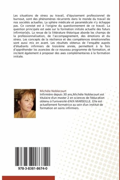 Les situations de stress au travail, d'épuisement professionnel de burnout, sont des phénomènes récurrents dans le monde du travail de nos sociétés actuelles. La sphère médicale et paramédicale n'y échappe pas. Ce constat est à l'origine du questionnement de ce travail. La question principale est axée sur la formation initiale actuelle des futurs infirmier(e)s. La revue de la littérature théorique aborde les champs de la professionnalisation, de l'accompagnement, des émotions et du stress. Les concepts de la résilience et des compétences émotionnelles sont aussi mis en avant. Les résultats obtenus de l'enquête auprès d'étudiants infirmiers de troisième année, permettent à la fois d'appréhender les avancées de ce nouveau programme de formation, et incitent également à proposer des axes complémentaires à la formation initiale.
