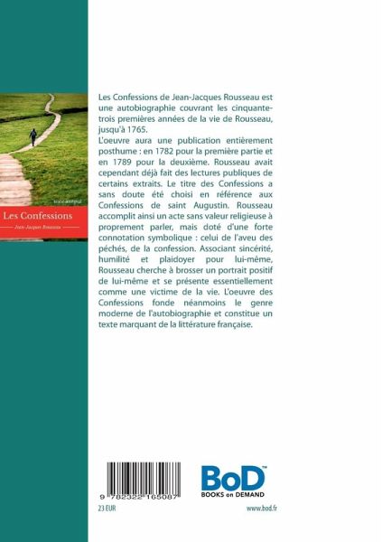 L'oeuvre aura une publication entièrement posthume : en 1782 pour la première partie et en 1789 pour la deuxième. Rousseau avait cependant déjà fait des lectures publiques de certains extraits. Le titre des Confessions a sans doute été choisi en référence aux Confessions de saint Augustin. Rousseau accomplit ainsi un acte sans valeur religieuse à proprement parler, mais doté d'une forte connotation symbolique : celui de l'aveu des péchés, de la confession. Associant sincérité, humilité et plaidoyer pour lui-même, Rousseau cherche à brosser un portrait positif de lui-même et se présente essentiellement comme une victime de la vie. L'oeuvre des Confessions fonde néanmoins le genre moderne de l'autobiographie et constitue un texte marquant de la littérature française.