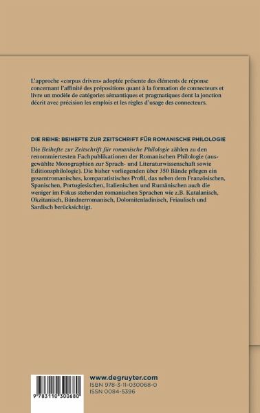 This study undertakes a systematic analysis of French prepositional connectors. It explains the tendency of prepositions to form connectors and provides a model of complementary semantic and pragmatic categories covering the types, functions, and usage of connectors across a variety of genres.