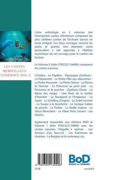 Cette anthologie en deux volumes des intemporels contes d'Andersen comprend les plus célèbres contes de l'écrivain danois en texte intégral. Ces deux ouvrages raviront les petits et grands. Une attention toute particulière a été apportée à l'édition numérique de cet ouvrage pour le confort de lecture.
