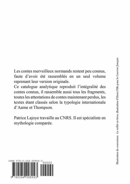 Les contes merveilleux normands restent peu connus, faute d'avoir été rassemblés en un seul volume reprenant leur version originale. Ce catalogue analytique reproduit l'intégralité des contes connus, il rassemble aussi tous les fragments, toutes les attestations de contes maintenant perdus, les textes étant classés selon la typologie internationale d'Aarne et Thompson. Patrice Lajoye travaille au CNRS. Il est spécialiste en mythologie comparée.