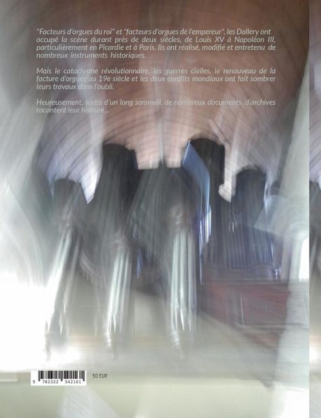 "Facteurs d'orgues du roi" et "facteurs" d'orgues de l'empereur", les Dallery ont occupé la scène durant près de deux siècles, de Louis XV à Napoléon III, particulièrement en Picardie et à Paris. Ils ont réalisé, modifié et entretenu de nombreux instruments historiques. Mais le cataclysme révolutionnaire, les guerres civiles, le renouveau de la facture d'orgues au 19e siècle et les deux conflits mondiaux ont fait sombrer leurs travaux dans l'oubli. Heureusement, de nombreux documents d'archives racontent leur histoire...