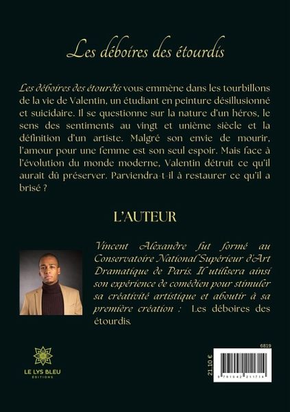 Les déboires des étourdis vous emmène dans les tourbillons de la vie de Valentin, un étudiant en peinture désillusionné et suicidaire. Il se questionne sur la nature d¿un héros, le sens des sentiments au vingt et unième siècle et la définition d¿un artiste. Malgré son envie de mourir, l¿amour pour une femme est son seul espoir. Mais face à l¿évolution du monde moderne, Valentin détruit ce qüil aurait dû préserver. Parviendra-t-il à restaurer ce qüil a brisé ?