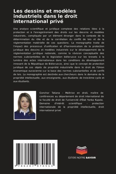 Une analyse scientifique et juridique complexe des relations liées à la protection et à l'enregistrement des droits sur les dessins et modèles industriels, compliquée par un élément étranger dans le contexte de la détermination du rôle et de la corrélation du conflit de lois et de la réglementation matérielle de ces questions. La monographie traite de l'impact des processus d'unification et d'harmonisation de la protection juridique des dessins et modèles industriels sur le développement de la réglementation juridique nationale, comme la révision conceptuelle des normes substantielles de la législation biélorusse sur les brevets à la lumière des actes internationaux dans les conditions du développement innovant de la République de Biélorussie, ainsi que le concept de protection juridique de ces objets de propriété industrielle dans le droit de l'Union économique eurasienne sur la base des normes substantielles et de conflit de lois. La monographie est destinée aux chercheurs dans le domaine de la propriété intellectuelle, aux enseignants, aux étudiants de troisième cycle et aux étudiants.