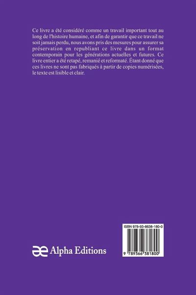 Les diables noirs: drame en quatre actes" est un livre classique, qui a eu une valeur significative tout au long de l'histoire, et pour garantir que sa sagesse intemporelle ne soit jamais perdue, Alpha Editions l'a soigneusement préservé en le republiant dans un format moderne et accessible aux générations présentes et futures. Soigneusement reformaté, retapé , et nouvellement conçue, cette édition offre un texte clair et lisible, sans copies numérisées de l'uvre originale, Alpha Editions se consacre à insuffler une nouvelle vie aux livres anciens et classiques, rendant ces trésors littéraires à nouveau disponibles pour les lecteurs qui chérissent l'histoire. culture et savoir intemporel.