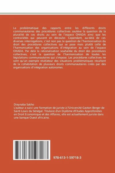 La problématique des rapports entre les différents droits communautaires des procédures collectives soulève la question de la pluralité de ces droits au sein de l'espace OHADA ainsi que les contrariétés qui peuvent en découler. Cependant, au-delà de ces diverses interrogations, c'est non pas la question de l'harmonisation du droit des procédures collectives qui se pose mais plutôt celle de l'harmonisation des organisations d'intégration au sein de l'espace OHADA. Par delà la rationalisation souhaitée du droit des procédures collectives, c'est la question de l'harmonisation de toutes les législations communautaires qui s'impose. Les procédures collectives ne sont qu'un exemple révélateur des situations problématiques résultant de la cohabitation de plusieurs droits communautaires créés par des organisations d'intégration autonomes.