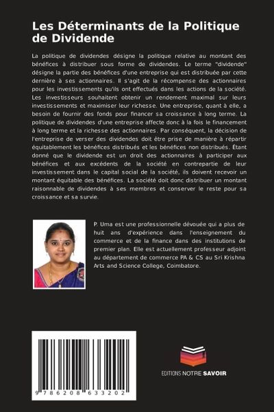 La politique de dividendes désigne la politique relative au montant des bénéfices à distribuer sous forme de dividendes. Le terme "dividende" désigne la partie des bénéfices d'une entreprise qui est distribuée par cette dernière à ses actionnaires. Il s'agit de la récompense des actionnaires pour les investissements qu'ils ont effectués dans les actions de la société. Les investisseurs souhaitent obtenir un rendement maximal sur leurs investissements et maximiser leur richesse. Une entreprise, quant à elle, a besoin de fournir des fonds pour financer sa croissance à long terme. La politique de dividendes d'une entreprise affecte donc à la fois le financement à long terme et la richesse des actionnaires. Par conséquent, la décision de l'entreprise de verser des dividendes doit être prise de manière à répartir équitablement les bénéfices distribués et les bénéfices non distribués. Étant donné que le dividende est un droit des actionnaires à participer aux bénéfices et aux excédents de la société en contrepartie de leur investissement dans le capital social de la société, ils doivent recevoir un montant équitable des bénéfices. La société doit donc distribuer un montant raisonnable de dividendes à ses membres et conserver le reste pour sa croissance et sa survie.