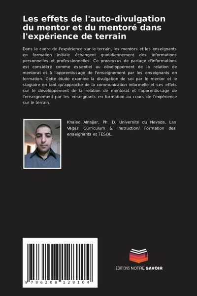 Dans le cadre de l'expérience sur le terrain, les mentors et les enseignants en formation initiale échangent quotidiennement des informations personnelles et professionnelles. Ce processus de partage d'informations est considéré comme essentiel au développement de la relation de mentorat et à l'apprentissage de l'enseignement par les enseignants en formation. Cette étude examine la divulgation de soi par le mentor et le stagiaire en tant qu'approche de la communication informelle et ses effets sur le développement de la relation de mentorat et l'apprentissage de l'enseignement par les enseignants en formation au cours de l'expérience sur le terrain.