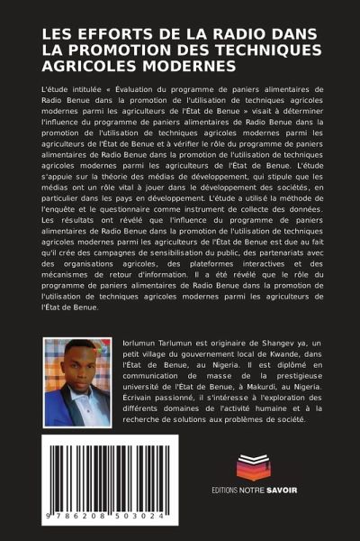 L'étude intitulée « Évaluation du programme de paniers alimentaires de Radio Benue dans la promotion de l'utilisation de techniques agricoles modernes parmi les agriculteurs de l'État de Benue » visait à déterminer l'influence du programme de paniers alimentaires de Radio Benue dans la promotion de l'utilisation de techniques agricoles modernes parmi les agriculteurs de l'État de Benue et à vérifier le rôle du programme de paniers alimentaires de Radio Benue dans la promotion de l'utilisation de techniques agricoles modernes parmi les agriculteurs de l'État de Benue. L'étude s'appuie sur la théorie des médias de développement, qui stipule que les médias ont un rôle vital à jouer dans le développement des sociétés, en particulier dans les pays en développement. L'étude a utilisé la méthode de l'enquête et le questionnaire comme instrument de collecte des données. Les résultats ont révélé que l'influence du programme de paniers alimentaires de Radio Benue dans la promotion de l'utilisation de techniques agricoles modernes parmi les agriculteurs de l'État de Benue est due au fait qu'il crée des campagnes de sensibilisation du public, des partenariats avec des organisations agricoles, des plateformes interactives et des mécanismes de retour d'information. Il a été révélé que le rôle du programme de paniers alimentaires de Radio Benue dans la promotion de l'utilisation de techniques agricoles modernes parmi les agriculteurs de l'État de Benue.