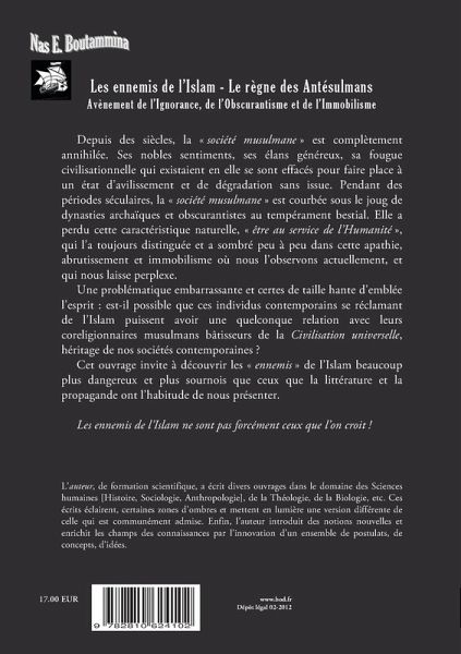 Depuis des siècles, la « société musulmane » est complètement annihilée. Ses nobles sentiments, ses élans généreux, sa fougue civilisationnelle qui existaient en elle se sont effacés pour faire place à un état d'avilissement et de dégradation sans issue. Pendant des périodes séculaires, la « société musulmane » est courbée sous le joug de dynasties archaïques et obscurantistes au tempérament bestial. Elle a perdu cette caractéristique naturelle, « être au service de l'Humanité », qui l'a toujours distinguée et a sombré peu à peu dans cette apathie, abrutissement et immobilisme où nous l'observons actuellement, et qui nous laisse perplexe.Une problématique embarrassante et certes de taille hante d'emblée l'esprit : est-il possible que ces individus contemporains se réclamant de l'Islam puissent avoir une quelconque relation avec leurs coreligionnaires musulmans bâtisseurs de la Civilisation universelle, héritage de nos sociétés contemporaines ?Cet ouvrage invite à découvrir les « ennemis » de l'Islam beaucoup plus dangereux et plus sournois que ceux que la littérature et la propagande ont l'habitude de nous présenter. Les ennemis de l'Islam ne sont pas forcément ceux que l'on croit !