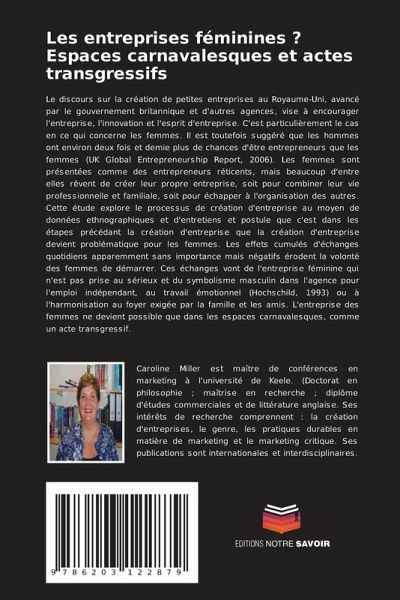 Le discours sur la création de petites entreprises au Royaume-Uni, avancé par le gouvernement britannique et d'autres agences, vise à encourager l'entreprise, l'innovation et l'esprit d'entreprise. C'est particulièrement le cas en ce qui concerne les femmes. Il est toutefois suggéré que les hommes ont environ deux fois et demie plus de chances d'être entrepreneurs que les femmes (UK Global Entrepreneurship Report, 2006). Les femmes sont présentées comme des entrepreneurs réticents, mais beaucoup d'entre elles rêvent de créer leur propre entreprise, soit pour combiner leur vie professionnelle et familiale, soit pour échapper à l'organisation des autres. Cette étude explore le processus de création d'entreprise au moyen de données ethnographiques et d'entretiens et postule que c'est dans les étapes précédant la création d'entreprise que la création d'entreprise devient problématique pour les femmes. Les effets cumulés d'échanges quotidiens apparemment sans importance mais négatifs érodent la volonté des femmes de démarrer. Ces échanges vont de l'entreprise féminine qui n'est pas prise au sérieux et du symbolisme masculin dans l'agence pour l'emploi indépendant, au travail émotionnel (Hochschild, 1993) ou à l'harmonisation au foyer exigée par la famille et les amis. L'entreprise des femmes ne devient possible que dans les espaces carnavalesques, comme un acte transgressif.