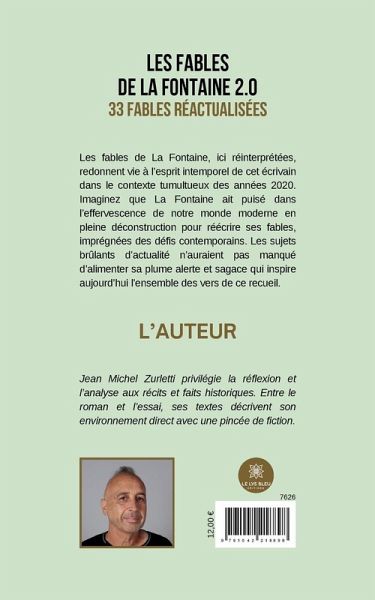 Les fables de La Fontaine, ici réinterprétées, redonnent vie à l¿esprit intemporel de cet écrivain dans le contexte tumultueux des années 2020. Imaginez que La Fontaine ait puisé dans l¿effervescence de notre monde moderne en pleine déconstruction pour réécrire ses fables, imprégnées des défis contemporains. Les sujets brûlants d¿actualité n¿auraient pas manqué d¿alimenter sa plume alerte et sagace qui inspire aujourd¿hui l¿ensemble des vers de ce recueil.