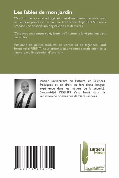 C'est fort d'une certaine imagination et d'une passion certaine pour les fleurs et plantes du jardin, que Lord Simon-Adjid PESENTI nous propose une observation originale de ces dernières.C'est avec amusement et légèreté qu'il humanise la végétation dans des fables.Passionné de petites histoires, de contes et de légendes, Lord Simon-Adjid PESENTI nous présente ici une sorte d'exploration de la nature, avec l'imagination d'un enfant.