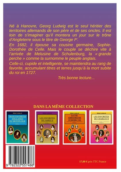 Traiter les galanteries des rois d'Angleterre par l'humour et l'anecdotique. Voici les grands traits de la petite histoire galante en bande dessinée. Ce quinzième volume traite du roi George Ier et de ses singulières maitresses. Né à Hanovre, Georg Ludwig est le seul héritier des territoires allemands de son père et de ses oncles. Il est encore loin d'imaginer qu'il montera un jour sur le trône d'Angleterre sous le titre de George Ier. En 1682, il épouse sa cousine germaine, Sophie-Dorothée de Celle. Mais le couple se déchire vite à l'arrivée de Melusine de Schulenburg, la "grande perche" comme la surnomme le peuple anglais. Cette dernière, cupide et intelligente, se maintiendra au rang de favorite, accumulant titres et terres jusqu'à la mort subite du roi en 1727.