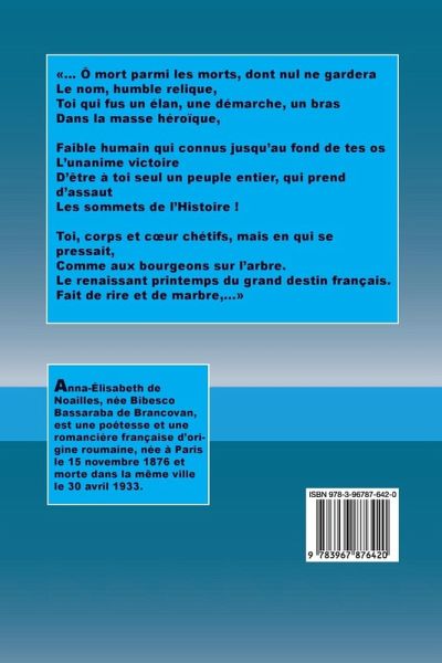 ... Ô mort parmi les morts, dont nul ne gardera Le nom, humble relique, Toi qui fus un élan, une démarche, un bras Dans la masse héroïque, Faible humain qui connus jusqu'au fond de tes os L'unanime victoire D'être à toi seul un peuple entier, qui prend d'assaut Les sommets de l'Histoire ! Toi, corps et c¿ur chétifs, mais en qui se pressait, Comme aux bourgeons sur l'arbre. Le renaissant printemps du grand destin français. Fait de rire et de marbre,...