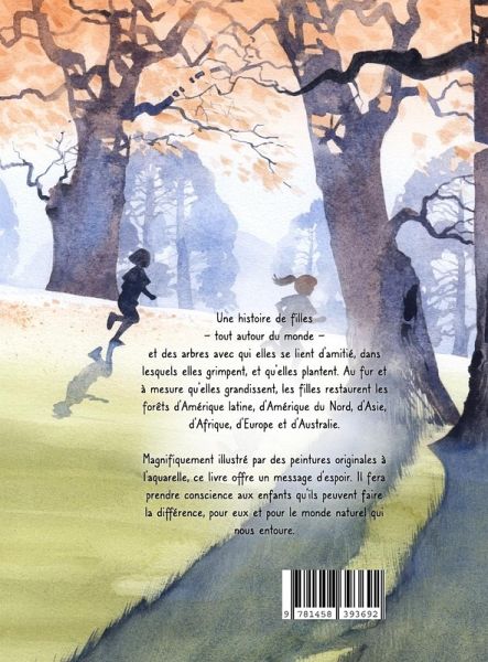 Une histoire de filles - tout autour du monde - et des arbres avec qui elles se lient d'amitié, dans lesquels elles grimpent, et qu'elles plantent. Au fur et à mesure qu'elles grandissent, les filles restaurent les forêts d'Amérique latine, d'Amérique du Nord, d'Asie, d'Afrique, d'Europe et d'Australie. Magnifiquement illustré par des peintures originales à l'aquarelle, ce livre offre un message d'espoir. Il fera prendre conscience aux enfants qu'ils peuvent faire la différence, pour eux et pour le monde naturel qui nous entoure.
