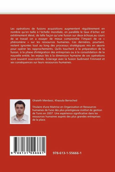Les opérations de fusions acquisitions augmentent régulièrement en nombre qu'en taille à l'échelle mondiale, en parallèle le taux d'échec est extrêmement élevé, de telle façon qu'une fusion sur deux échoue,au cours de se travail on a essayer de mieux comprendre l'impact de ce " phénomène " sur les ressources humaines. Ces dernières, pourtant, restent ignorées tout au long des processus stratégiques mis en uvre pour opérer les rapprochements. Qu'ils touchent à la préparation de la fusion, à la phase d'intégration des entreprises ou à la consolidation de la nouvelle entité, les enjeux liés à la dimension humaine de ces opérations sont souvent sous-estimés. Eclairage avec la fusion Sudinvest Fininvest et ses conséquences sur leurs ressources humaines.