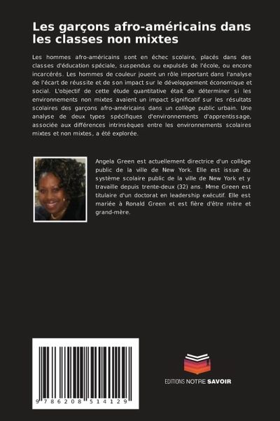 Les hommes afro-américains sont en échec scolaire, placés dans des classes d'éducation spéciale, suspendus ou expulsés de l'école, ou encore incarcérés. Les hommes de couleur jouent un rôle important dans l'analyse de l'écart de réussite et de son impact sur le développement économique et social. L'objectif de cette étude quantitative était de déterminer si les environnements non mixtes avaient un impact significatif sur les résultats scolaires des garçons afro-américains dans un collège public urbain. Une analyse de deux types spécifiques d'environnements d'apprentissage, associée aux différences intrinsèques entre les environnements scolaires mixtes et non mixtes, a été explorée.