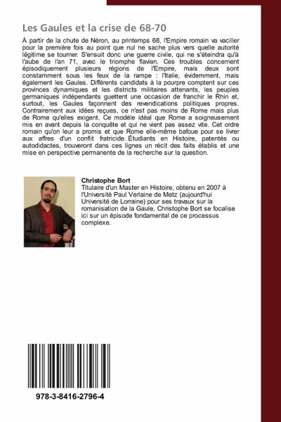 À partir de la chute de Néron, au printemps 68, l'Empire romain va vaciller pour la première fois au point que nul ne sache plus vers quelle autorité légitime se tourner. S'ensuit donc une guerre civile, qui ne s'éteindra qu'à l'aube de l'an 71, avec le triomphe flavien. Ces troubles concernent épisodiquement plusieurs régions de l'Empire, mais deux sont constamment sous les feux de la rampe : l'Italie, évidemment, mais également les Gaules. Différents candidats à la pourpre comptent sur ces provinces dynamiques et les districts militaires attenants, les peuples germaniques indépendants guettent une occasion de franchir le Rhin et, surtout, les Gaules façonnent des revendications politiques propres. Contrairement aux idées reçues, ce n'est pas moins de Rome mais plus de Rome qu'elles exigent. Ce modèle idéal que Rome a soigneusement mis en avant depuis la conquête et qui ne vient pas assez vite. Cet ordre romain qu'on leur a promis et que Rome elle-même bafoue pour se livrer aux affres d'un conflit fratricide. Étudiants en Histoire, patentés ou autodidactes, trouveront dans ces lignes un récit des faits établis et une mise en perspective permanente de la recherche sur la question.
