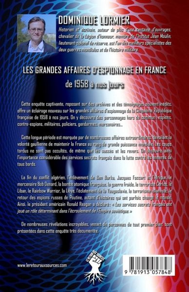 Cette enquête captivante, reposant sur des archives et des témoignages souvent inédits, offre un éclairage nouveau sur les grandes affaires d'espionnage de la Cinquième République française de 1958 à nos jours. On y découvre des personnages hors du commun : espions, contre-espions, militaires, policiers, gendarmes, mercenaires... Cette longue période est marquée par de nombreuses affaires extraordinaires, dévoilant la volonté gaullienne de maintenir la France au rang de grande puissance mondiale. Les coups tordus ne sont pas occultés, de même que les succès et les revers. On découvre ainsi l'importance considérable des services secrets français dans la lutte contre les ennemis de tous bords. La fin du conflit algérien, l'enlèvement de Ben Barka, Jacques Foccart et l'Afrique, le mercenaire Bob Denard, la bombe atomique française, la guerre froide, le terroriste Carlos, le Liban, le Rainbow Warrior, la Libye, l'éclatement de la Yougoslavie, le terrorisme islamiste, le retour des espions russes de Poutine, autant d'histoires qui ont parfois changé le monde. Ainsi, le président américain Ronald Reagan a déclaré : « Les services secrets français ont joué un rôle déterminant dans l'écroulement de l'Empire soviétique. » De nombreuses révélations incroyables, venant de personnes de tout premier plan, sont présentées dans cette enquête très documentée.