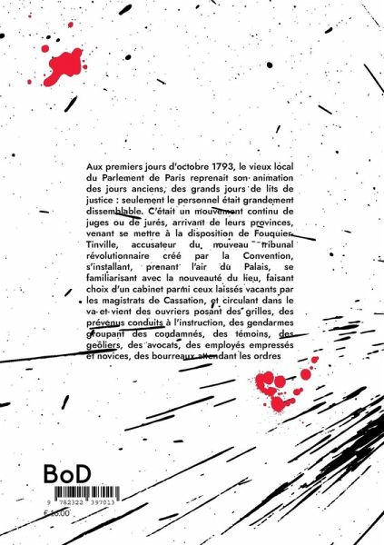Aux premiers jours d'octobre 1793, le vieux local du Parlement de Paris reprenait son animation des jours anciens, des grands jours de lits de justice : seulement le personnel était grandement dissemblable. C'était un mouvement continu de juges ou de jurés, arrivant de leurs provinces, venant se mettre à la disposition de Fouquier-Tinville, accusateur du nouveau tribunal révolutionnaire créé par la Convention, s'installant, prenant l'air du Palais, se familiarisant avec la nouveauté du lieu, faisant choix d'un cabinet parmi ceux laissés vacants par les magistrats de Cassation, et circulant dans le va-et-vient des ouvriers posant des grilles, des prévenus conduits à l'instruction, des gendarmes groupant des condamnés, des témoins, des geôliers, des avocats, des employés empressés et novices, des bourreaux attendant les ordres