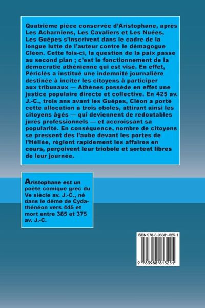 Quatrième pièce conservée d'Aristophane, après Les Acharniens, Les Cavaliers et Les Nuées, Les Guêpes s'inscrivent dans le cadre de la longue lutte de l'auteur contre le démagogue Cléon. Cette fois-ci, la question de la paix passe au second plan ; c'est le fonctionnement de la démocratie athénienne qui est visé. En effet, Périclès a institué une indemnité journalière destinée à inciter les citoyens à participer aux tribunaux - Athènes possède en effet une justice populaire directe et collective. En 425 av. J.-C., trois ans avant les Guêpes, Cléon a porté cette allocation à trois oboles, attirant ainsi les citoyens âgés - qui deviennent de redoutables jurés professionnels - et accroissant sa popularité. En conséquence, nombre de citoyens se pressent dès l'aube devant les portes de l'Héliée, règlent rapidement les affaires en cours, perçoivent leur triobole et sortent libres de leur journée.