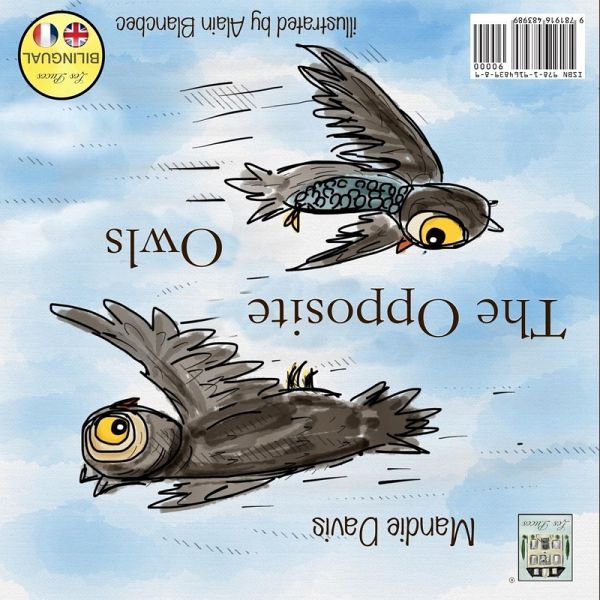 A bilingual French / English story book for children aged 3-11 years. The book teaches about opposites. The story follows two owls called the 'opposite owls' who, as you might guess, always do the opposite to each other. The book is in a special 'flip it' format. The story reads in one language one way around and if you flip the book over it is the same story in the other language. It is not possible to see both languages at the same time. There is a vocabulary section in both languages in the centre pages. The book is full colour with a soft, full gloss cover and 15 full illustrations. One of a series of bilingual books by Mandie Davis.