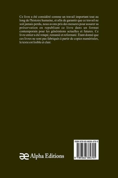 Les Immémoriaux" est un livre classique, qui a eu une valeur significative tout au long de l'histoire, et pour garantir que sa sagesse intemporelle ne soit jamais perdue, Alpha Editions l'a soigneusement préservé en le republiant dans un format moderne et accessible aux générations présentes et futures. Soigneusement reformaté, retapé , et nouvellement conçue, cette édition offre un texte clair et lisible, sans copies numérisées de l'uvre originale, Alpha Editions se consacre à insuffler une nouvelle vie aux livres anciens et classiques, rendant ces trésors littéraires à nouveau disponibles pour les lecteurs qui chérissent l'histoire. culture et savoir intemporel.