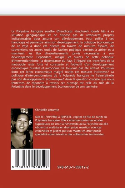 La Polynésie française souffre d'handicaps structurels lourds liés à sa situation géographique et ne dispose pas de ressources propres indispensables pour assurer son développement. Pour pallier à ces handicaps et permettre ainsi son développement, la politique économique de ce Pays a donc été orienté au travers de mesures fiscales, de subventions ou autres outils de l'action publique destinés à attirer et à maintenir les flux d'investissements privés nécessaires à son développement. Cependant, malgré les succès de cette politique d'interventionnisme, la dépendance du Pays à l'égard des transferts de la métropole reste forte et constante et l'objectif d'un développement économique durable et autonome n'a toujours pas été atteint. Pourquoi donc cet échec économique malgré toutes ces mesures incitatives? La politique d'interventionnisme de la Polynésie française ne freinerait-elle pas son développement économique? Ainsi la question cruciale que nous tenterons de répondre à travers cet ouvrage est celle du rôle de la Polynésie dans le développement économique de son territoire.