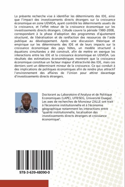 La présente recherche vise à identifier les déterminants des IDE, ainsi que l'impact des investissements directs étrangers sur la croissance économique en zone UEMOA, ayant contrôlé les déterminants usuels de la croissance, et l'effet retour de la croissance économique sur les investissements directs étrangers. L'étude couvre la période 1980-2008, correspondant à la phase d'adoption des programmes d'ajustement structurel, de libéralisation et de raréfaction des ressources de l'aide publique au développement. Après une discussion théorique et empirique sur les déterminants des IDE et de leurs impacts sur la croissance économique des pays hôtes, un modèle structurel à équations simultanées a été construit, afin de mettre en exergue les interactions entre les IDE et la croissance économique en UEMOA. Les résultats des estimations économétriques montrent que la croissance économique constitue un facteur majeur d'attractivité des IDE, mais ces derniers sont un déterminant mineur de la croissance. Ce qui conduit à des implications de politiques économiques afin de rendre plus attractif l'environnement des affaires de l'Union pour attirer davantage d'investissements directs étrangers.